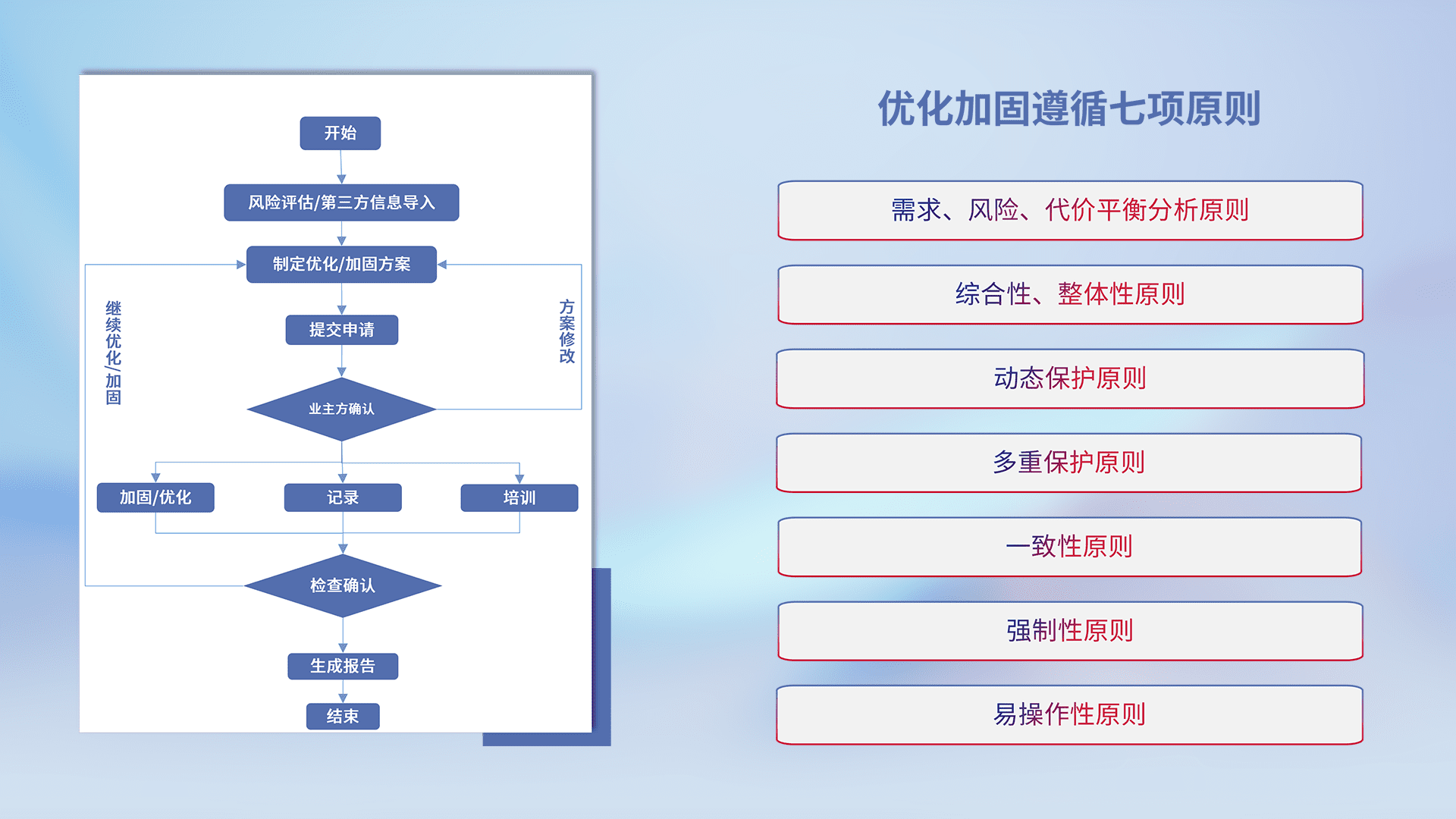 最大程度利用现有资产,,,,对评估发现的问题进行封堵与整改,,,,防止漏洞被利用,,,,提升整体网络安全性,,,,为客户带来高标准的优化加固服务。。。。